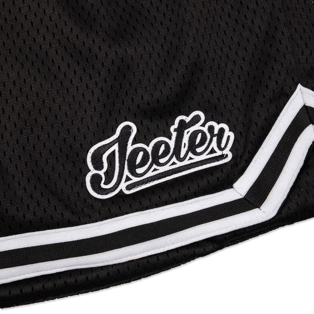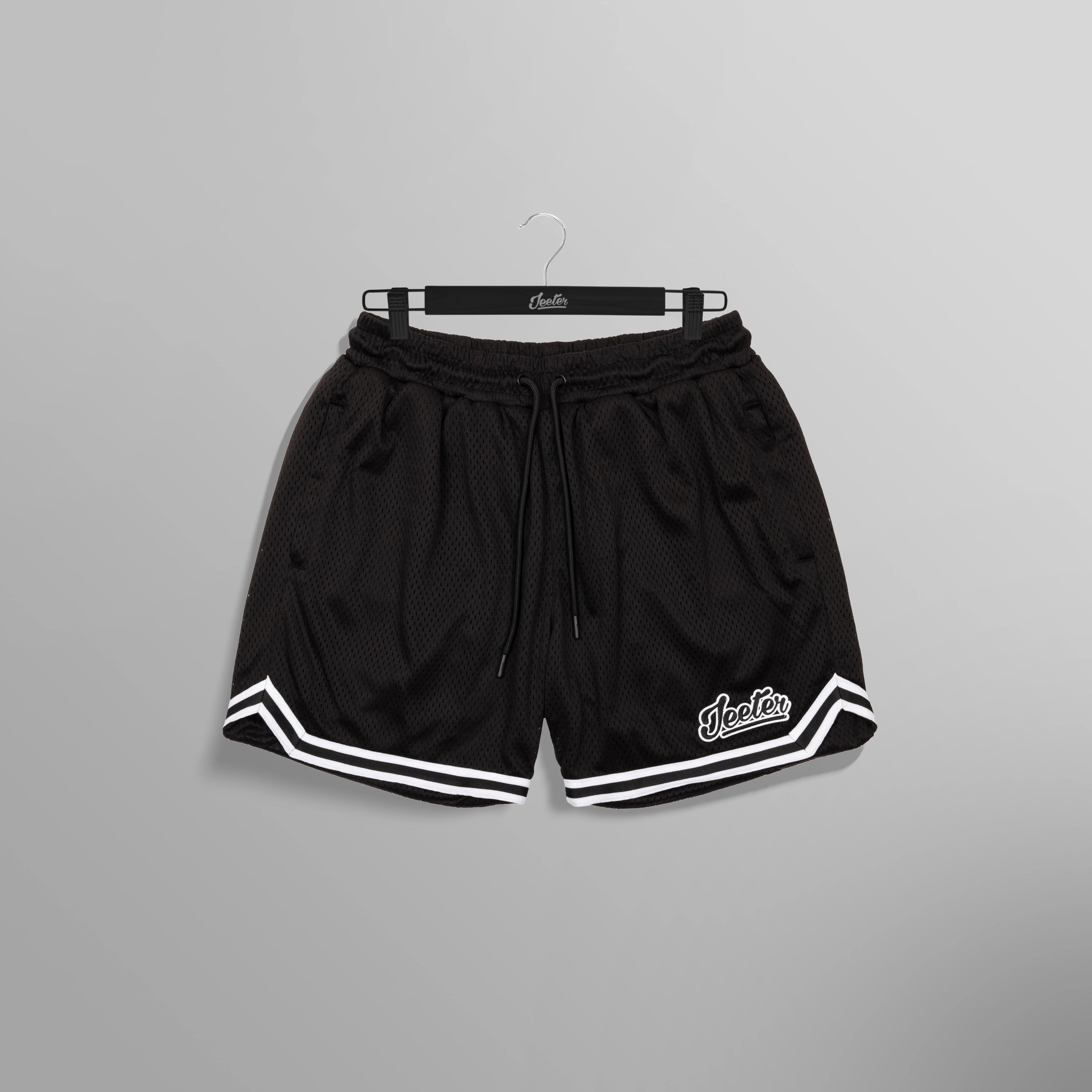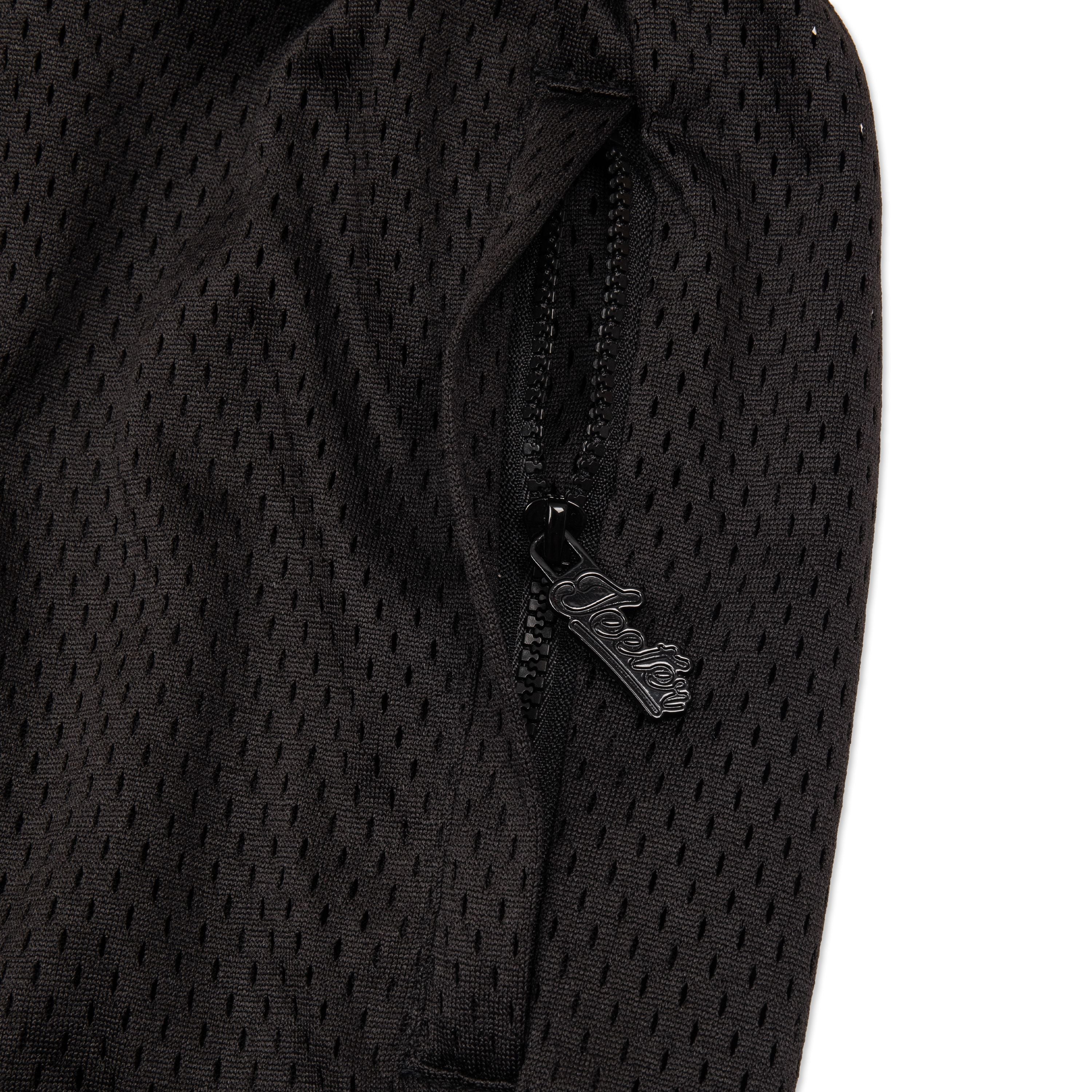 Nothing feels better than throwing on a simple pair of mesh shorts with your favorite tee. This Jeeter take on the traditional mesh shorts features an elastic waistband and a drawcord with white athletic trim at the hem and a direct 'Jeeter' embroidery at the left leg. These shorts include Jeeter logo zippers at the front hips and rear zipper pockets for optimal storage when running daily errands or hitting the basketball court.