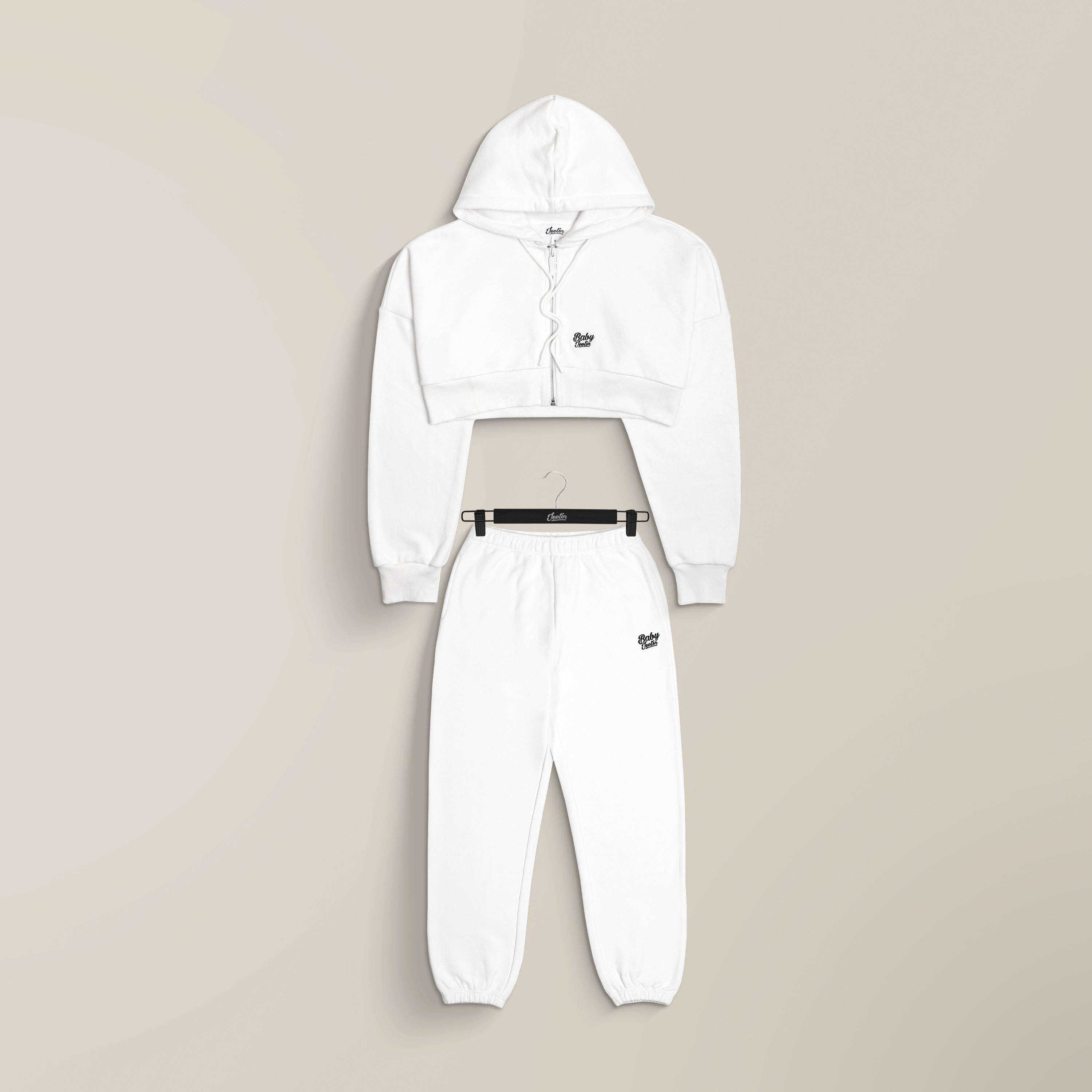The clean aesthetics of our Jeeter For Her Sweatpants make it a perfect pick for running errands, long flights and cozy nights in. Made to pair with our Cropped Zip Up Hoodie.