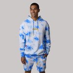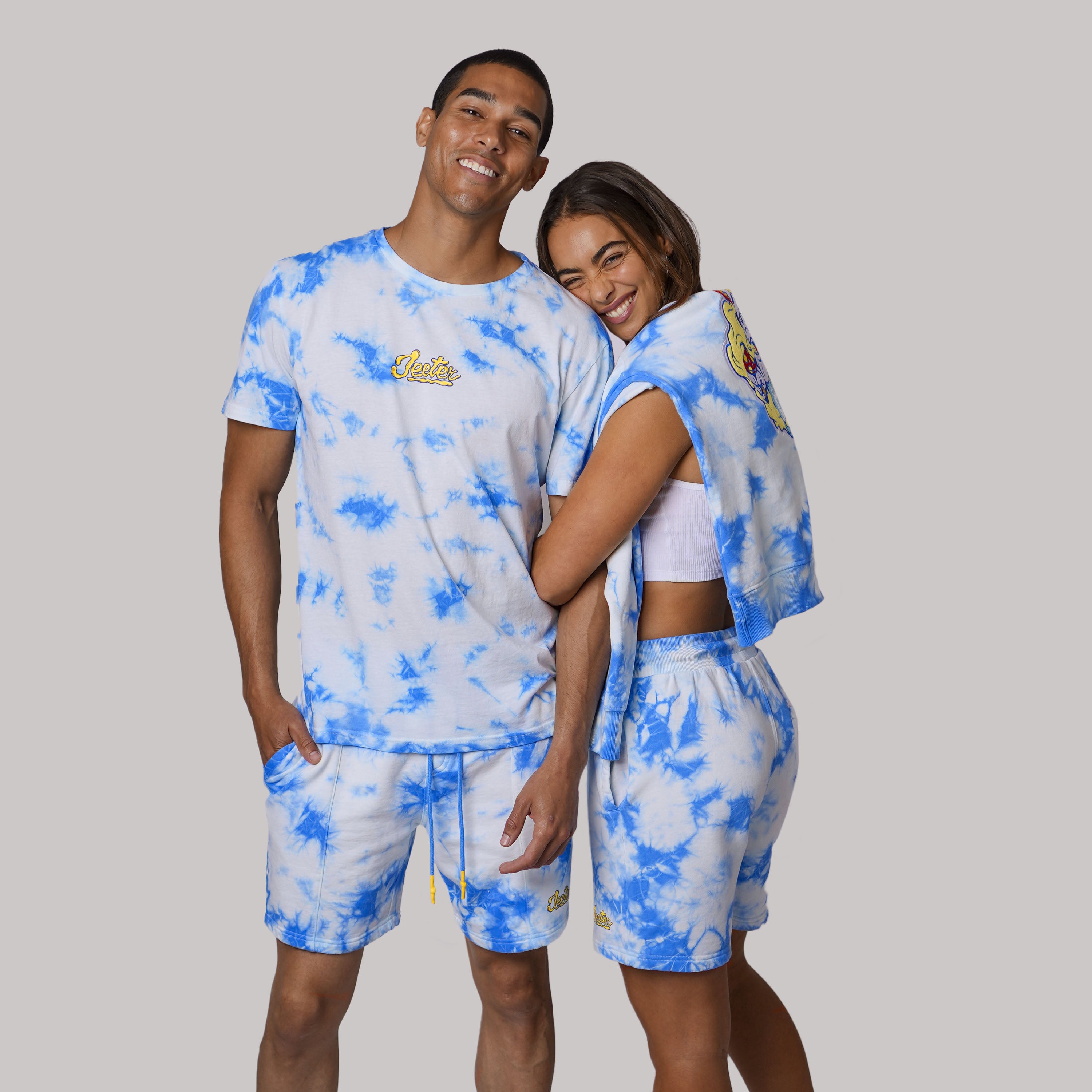 Pull-on shorts with an elastic waistband in loopback French terry featuring our "Cloud" tie dye color effect ensuring no two shorts are the exact same. This item also features our corded drawcords with acetate-dipped knot finish. It has on-seam front pockets and a rear welt pocket for storage. It also features our custom clouded Jeeter lettering printed at the bottom hem.