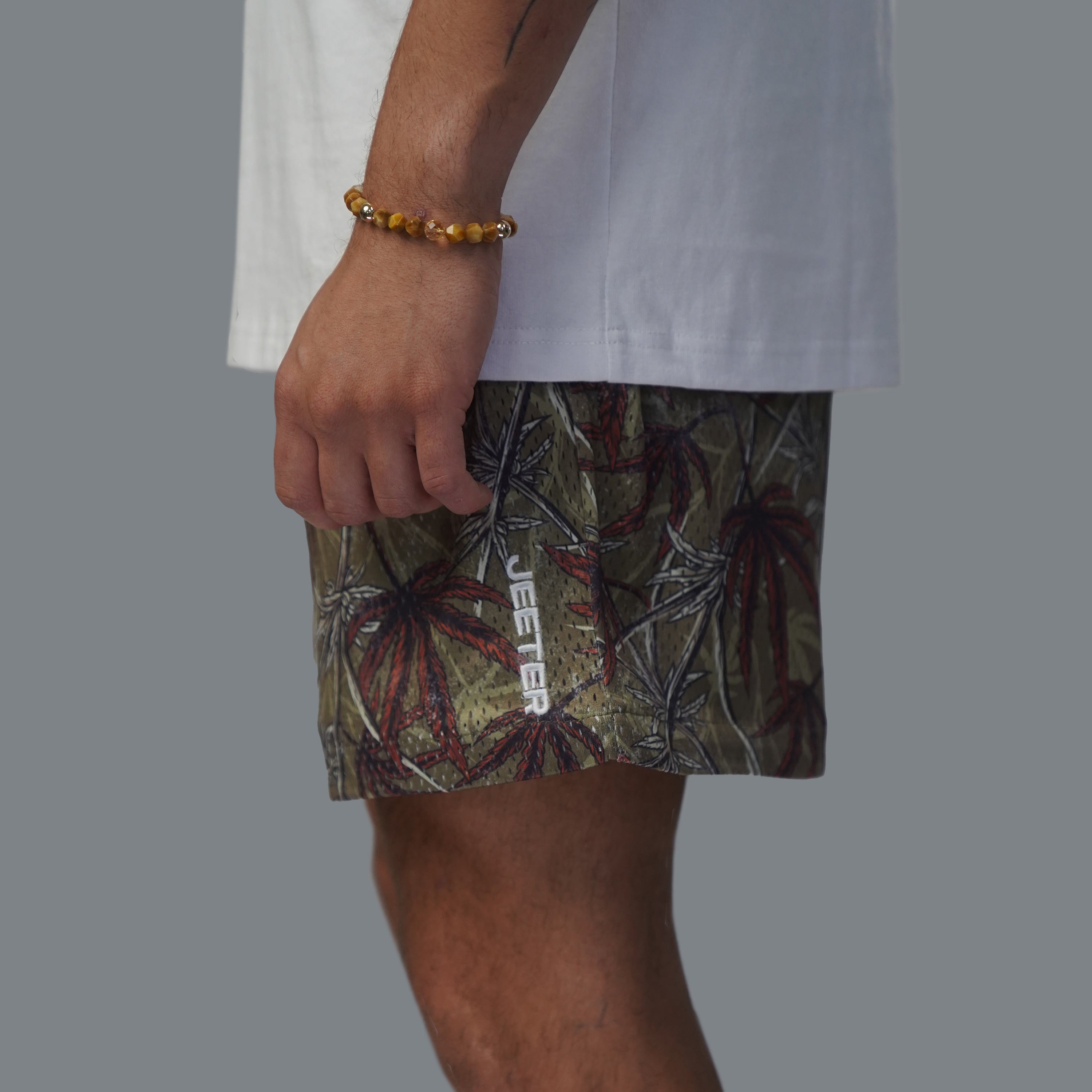 Nothing feels better than throwing on a pair of mesh shorts with your favorite tee. This Jeeter take on the traditional mesh shorts features a floral camo print with an elastic waistband and a black drawcord. These shorts include zippers at the front hips and rear pockets for optimal storage when running daily errands or hitting the basketball court.