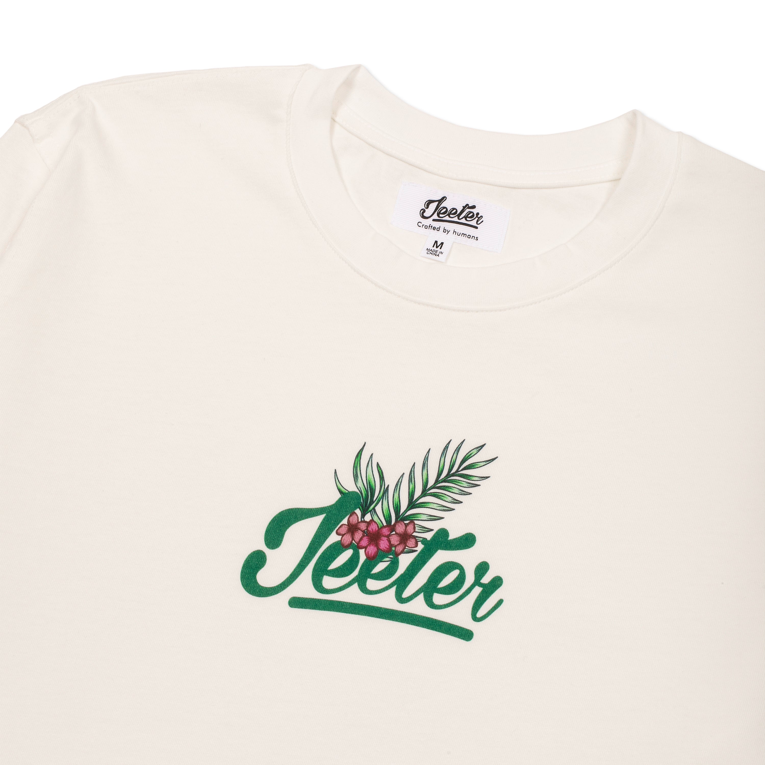 Can’t go wrong with a classic white tee, but this time, with a little tropical Jeeter flair. We put the class in classic in this Jeeter Floral Tee.