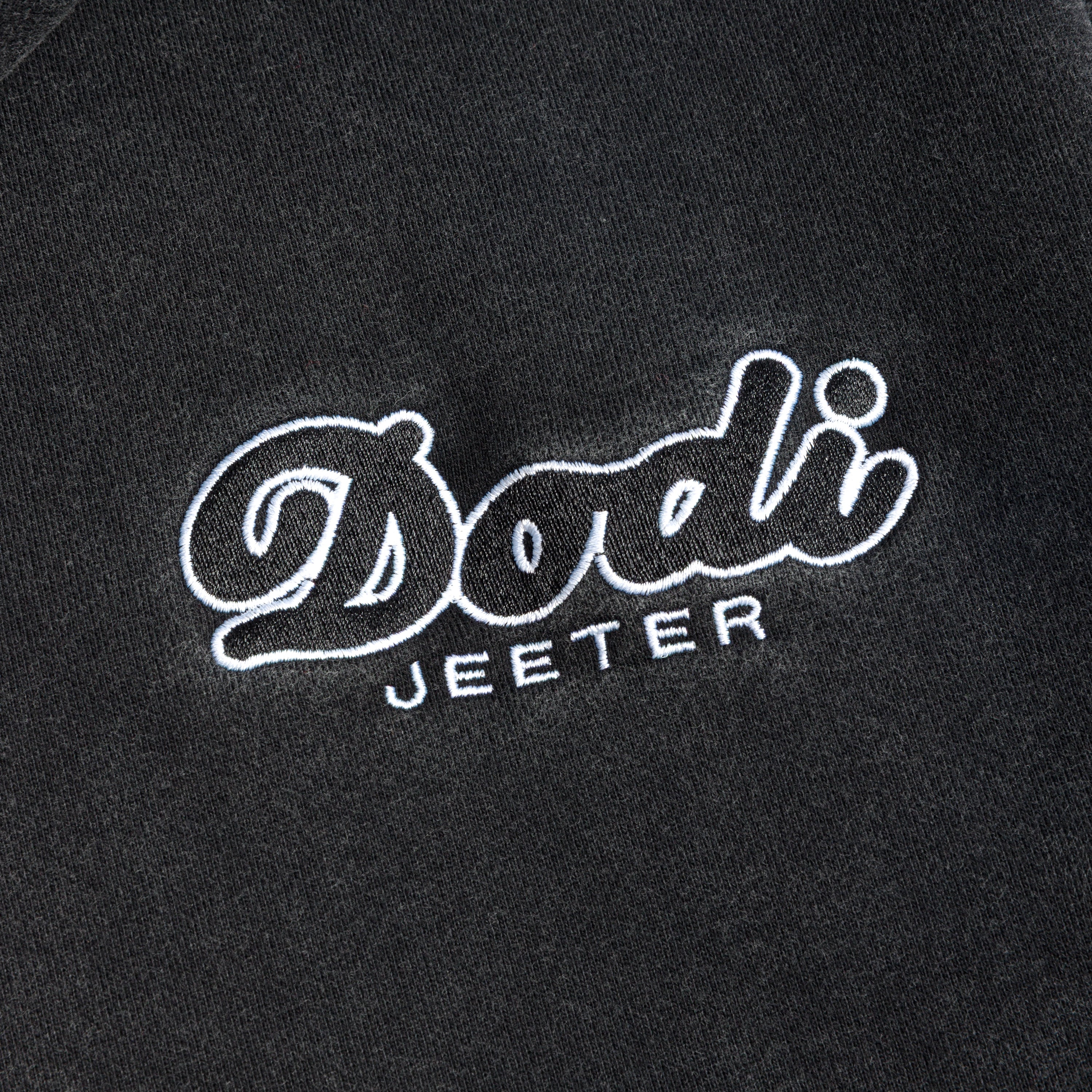 Crafted for maximum comfort and stealthy style, the Marshawn Lynch Dodi x Jeeter Hoodie is a core component of the Marshawn Lynch uniform. The washed-black heavyweight fleece features a minimalist "Dodi" logo on the chest, while the back showcases a larger collaborative graphic that stays true to the collection's "culture-first" lens. It’s a versatile, rugged essential that provides the perfect layer for a "no-nonsense" look, whether you’re on the move or keeping it low-key.
