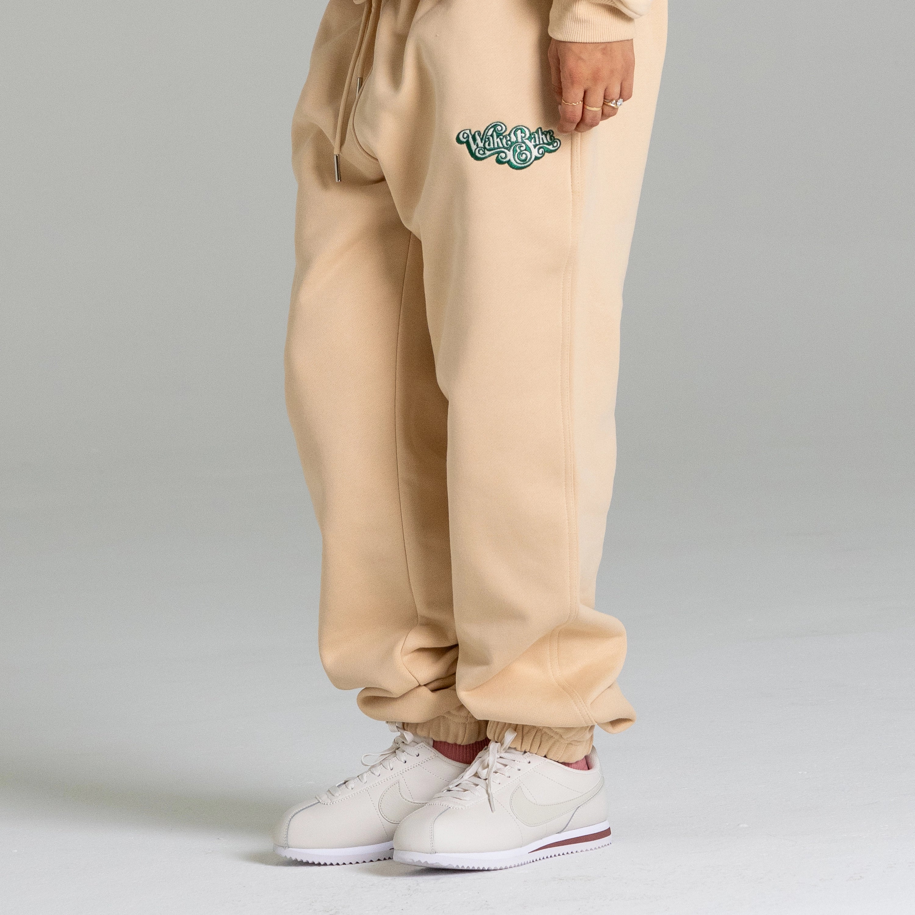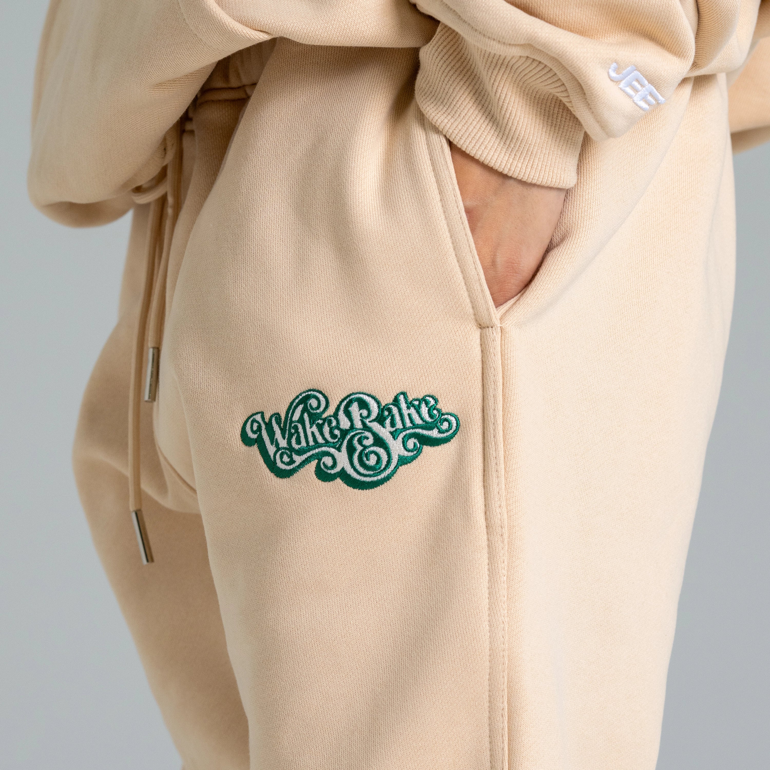 Effortless comfort, dialed in. The Wake + Bake Sand Sweatpants are cut from premium mid-weight fleece with a smooth exterior and a soft, brushed interior. They feature a comfy silhouette with an adjustable drawstring waistband and ribbed cuffs for a clean, tapered look. The warm sand tone makes them easy to pair with just about anything, especially the Wake + Bake Pullover. Designed for slow mornings, cozy nights, and everything in between.