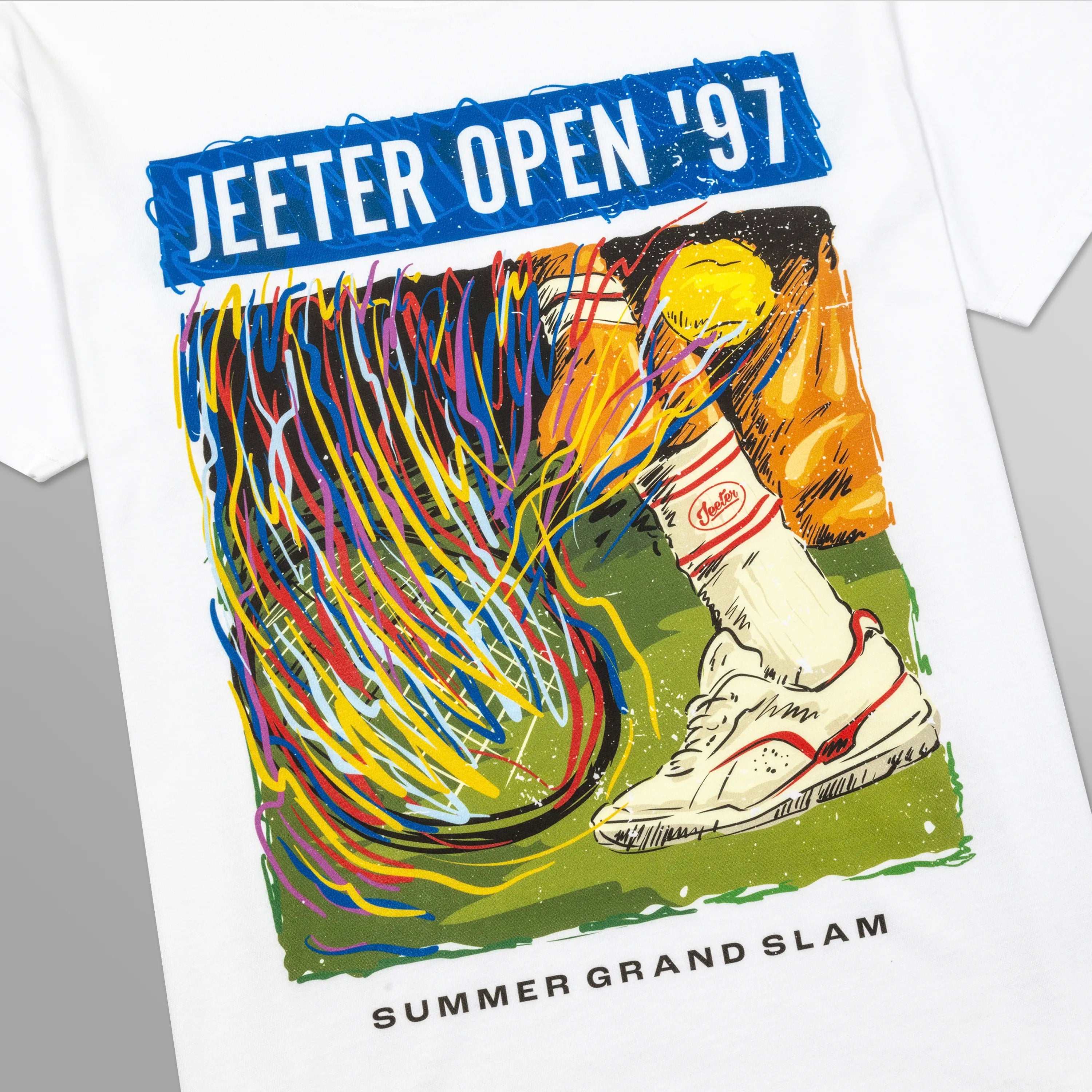 Channel the energy of championship season with the Jeeter Open Summer Grand Slam Tee. Crafted from soft, breathable cotton, this tee features vintage-inspired graphics that pay homage to classic tennis culture while keeping your look fresh and bold. Perfect for courtside hangs or everyday flex, it’s a staple built to hit hard and turn heads.