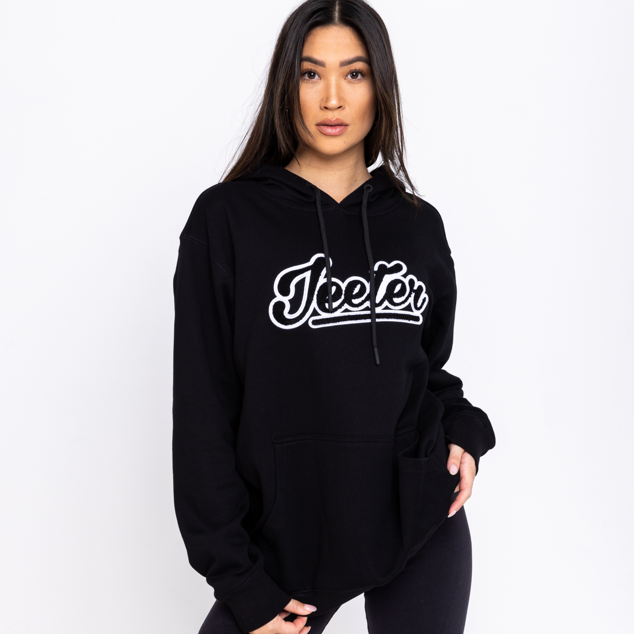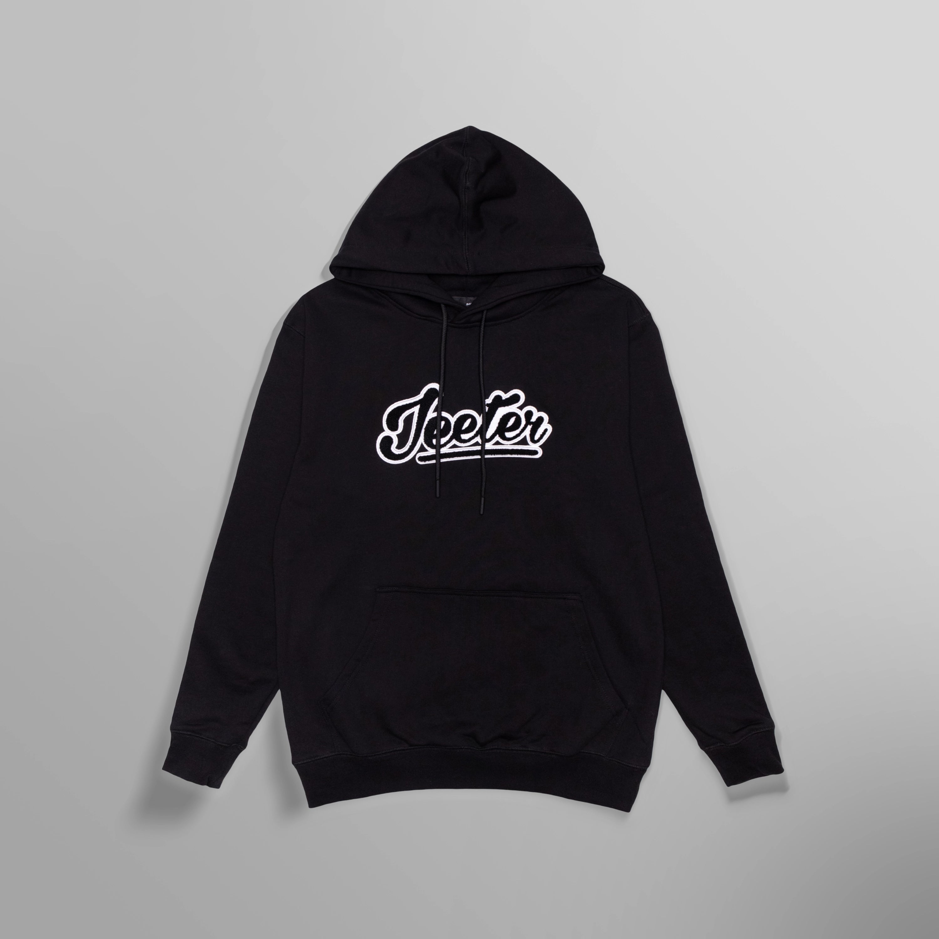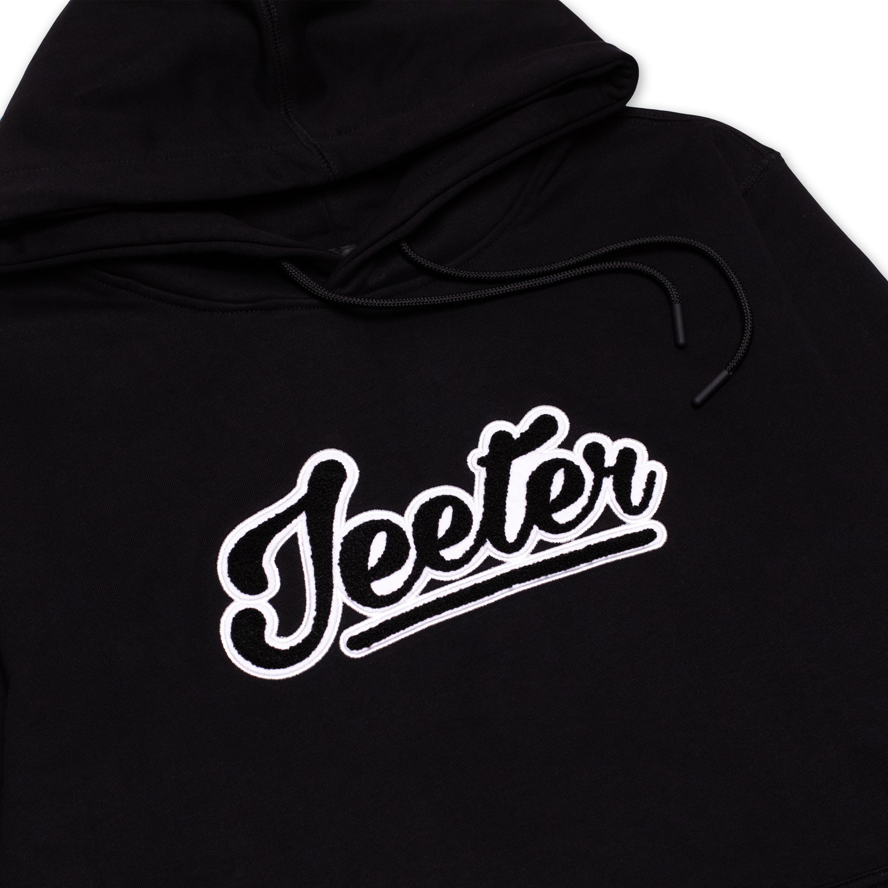 Our Classid Pullover Hoodie has a kangaroo pocket and Jeeter logo chenille appliqué at the center front chest, perfect for wearing with our Classic Jeeter Sweatpants.