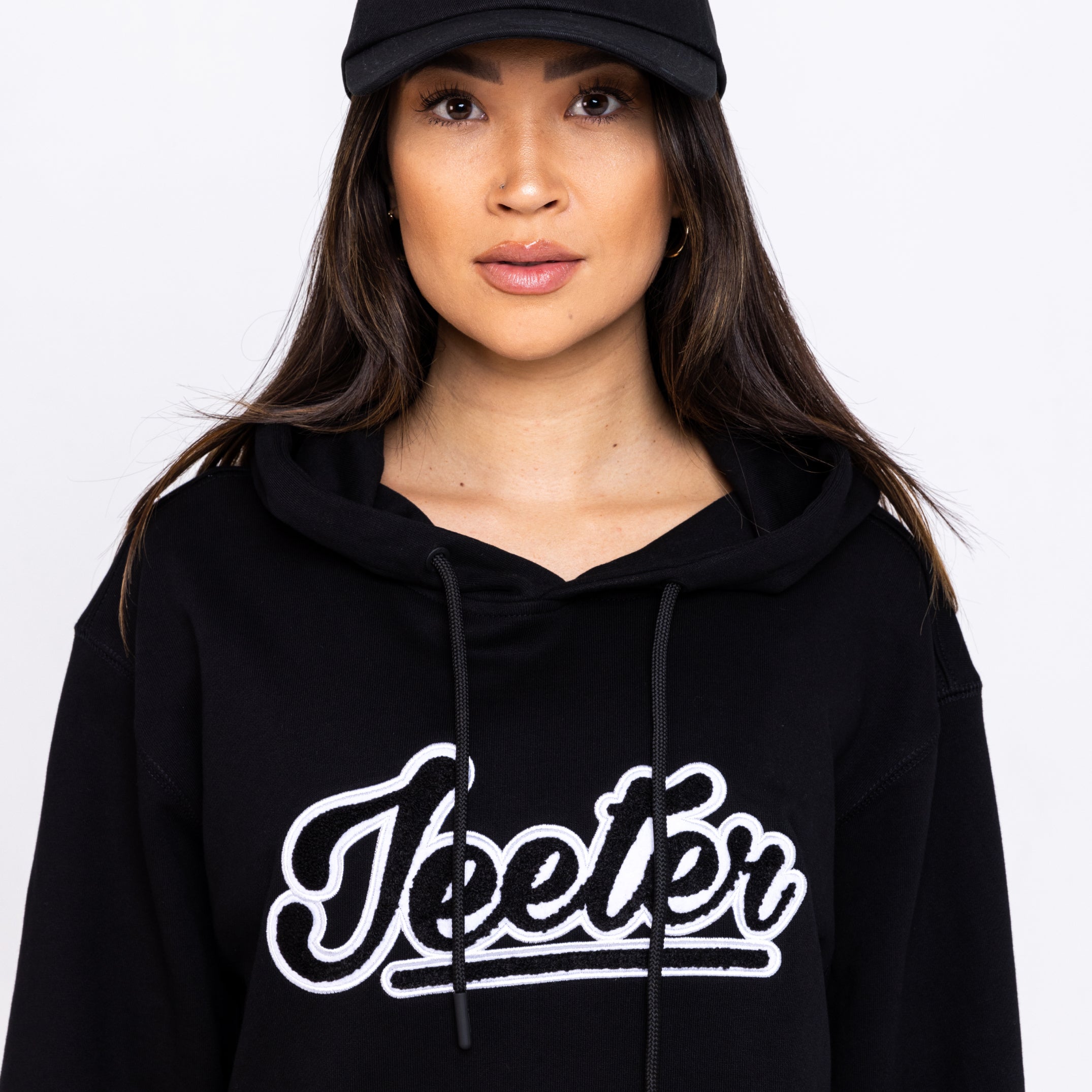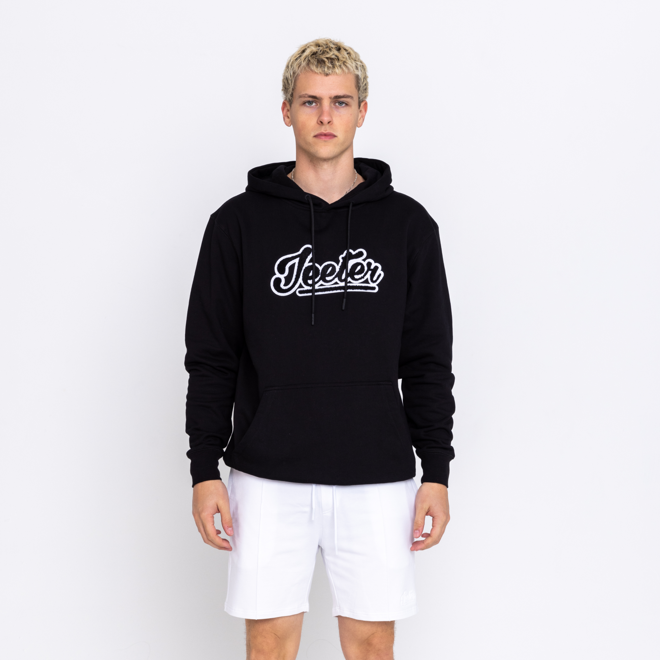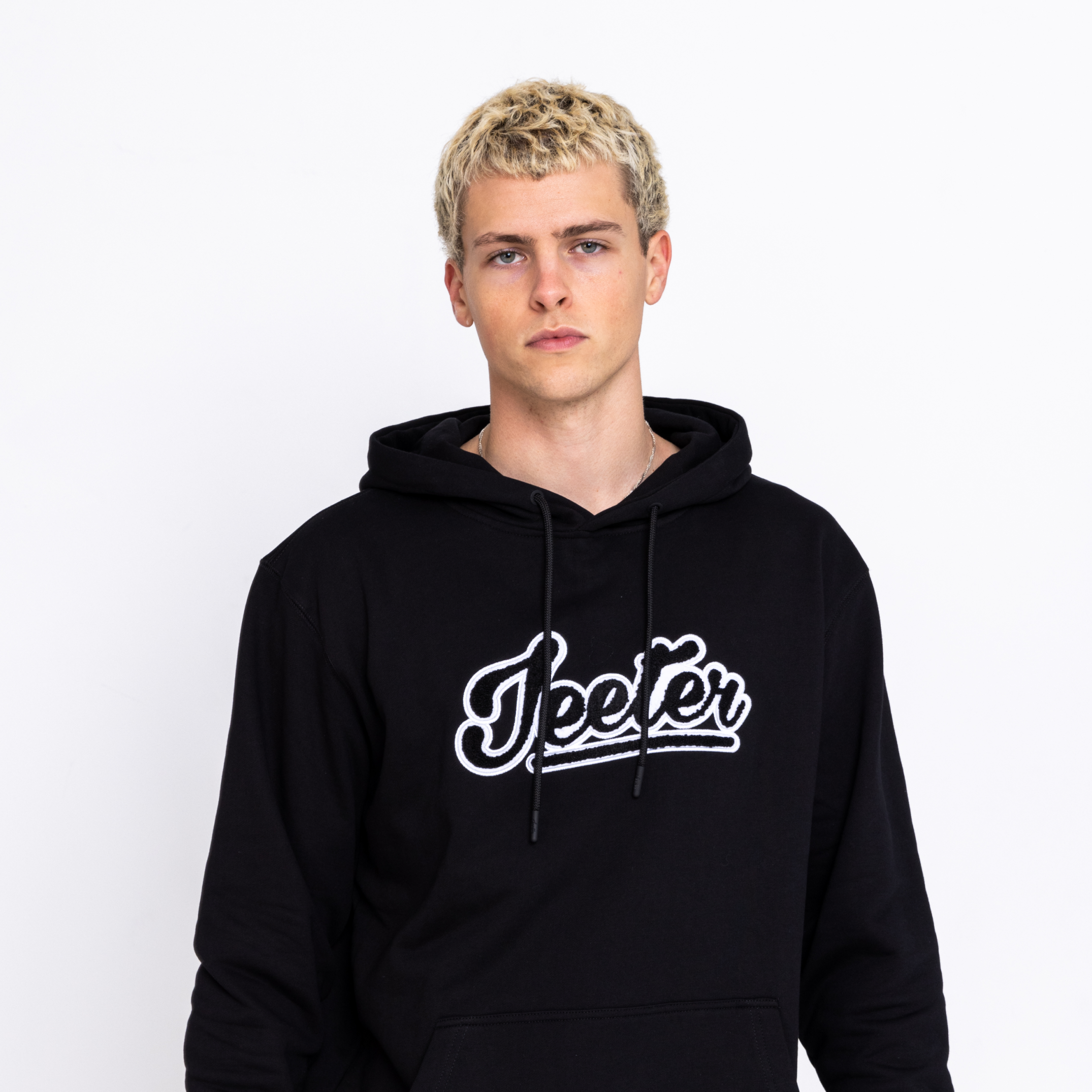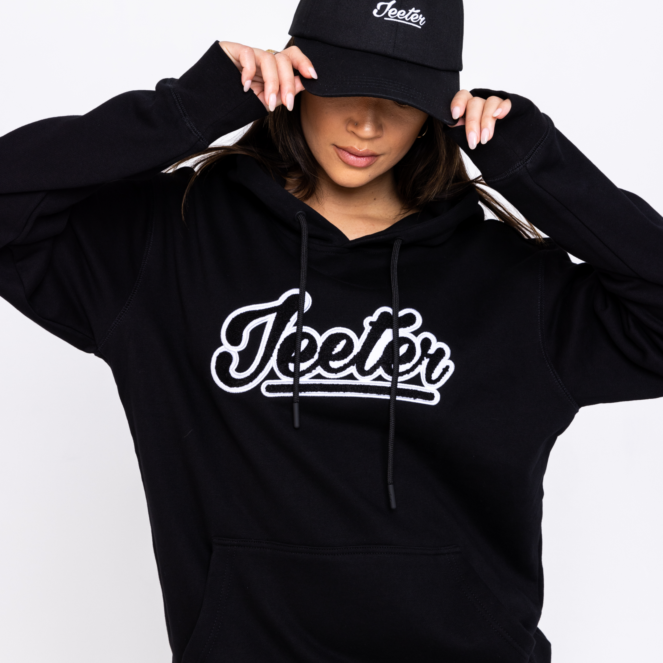 Our Classid Pullover Hoodie has a kangaroo pocket and Jeeter logo chenille appliqué at the center front chest, perfect for wearing with our Classic Jeeter Sweatpants.
