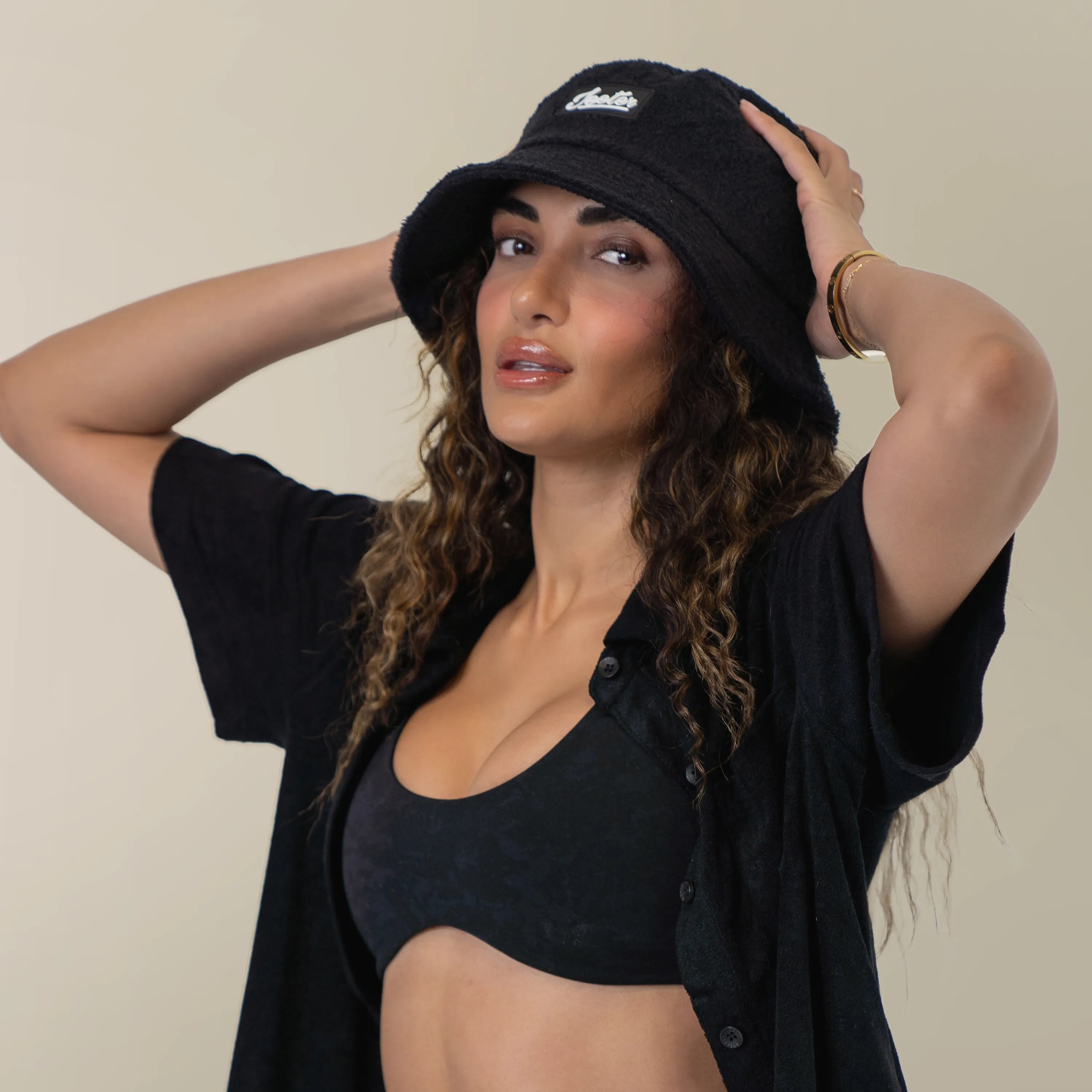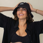 This Black Unisex bucket hat is made in a terry cloth with our signature logo. Pairs perfectly with our Terry sets.