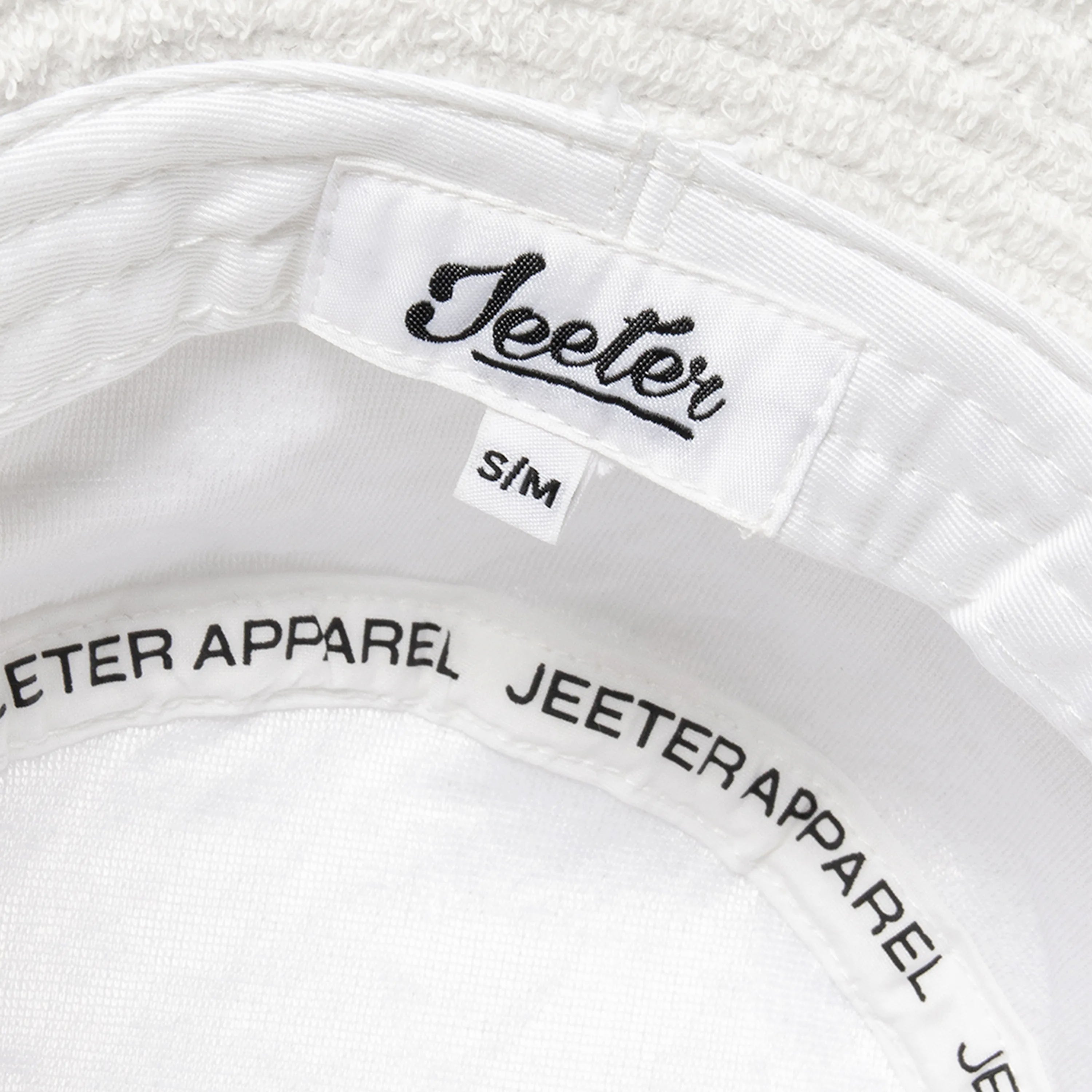 This White Unisex bucket hat is made in a terry cloth with our signature logo. Pairs perfectly with our Terry sets.