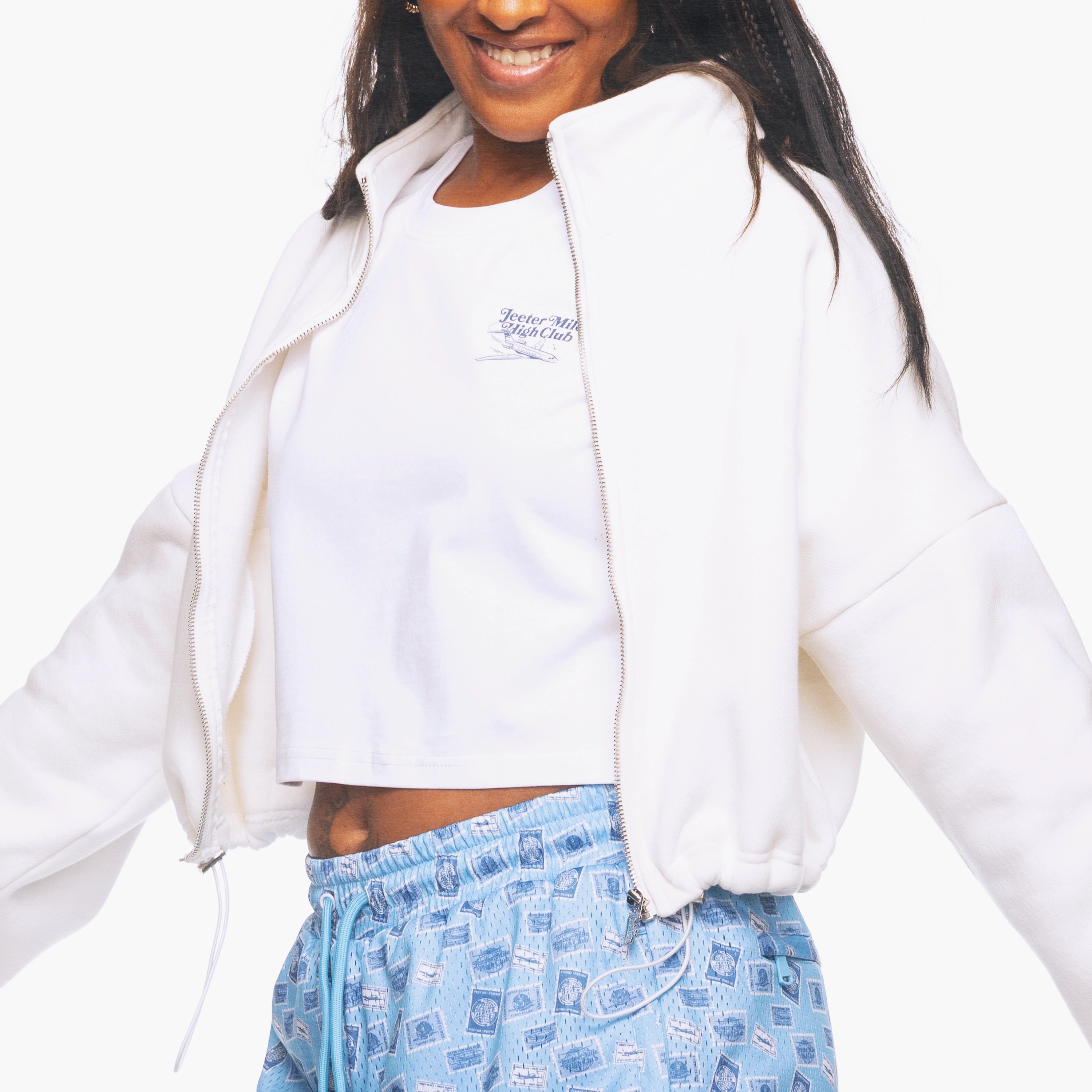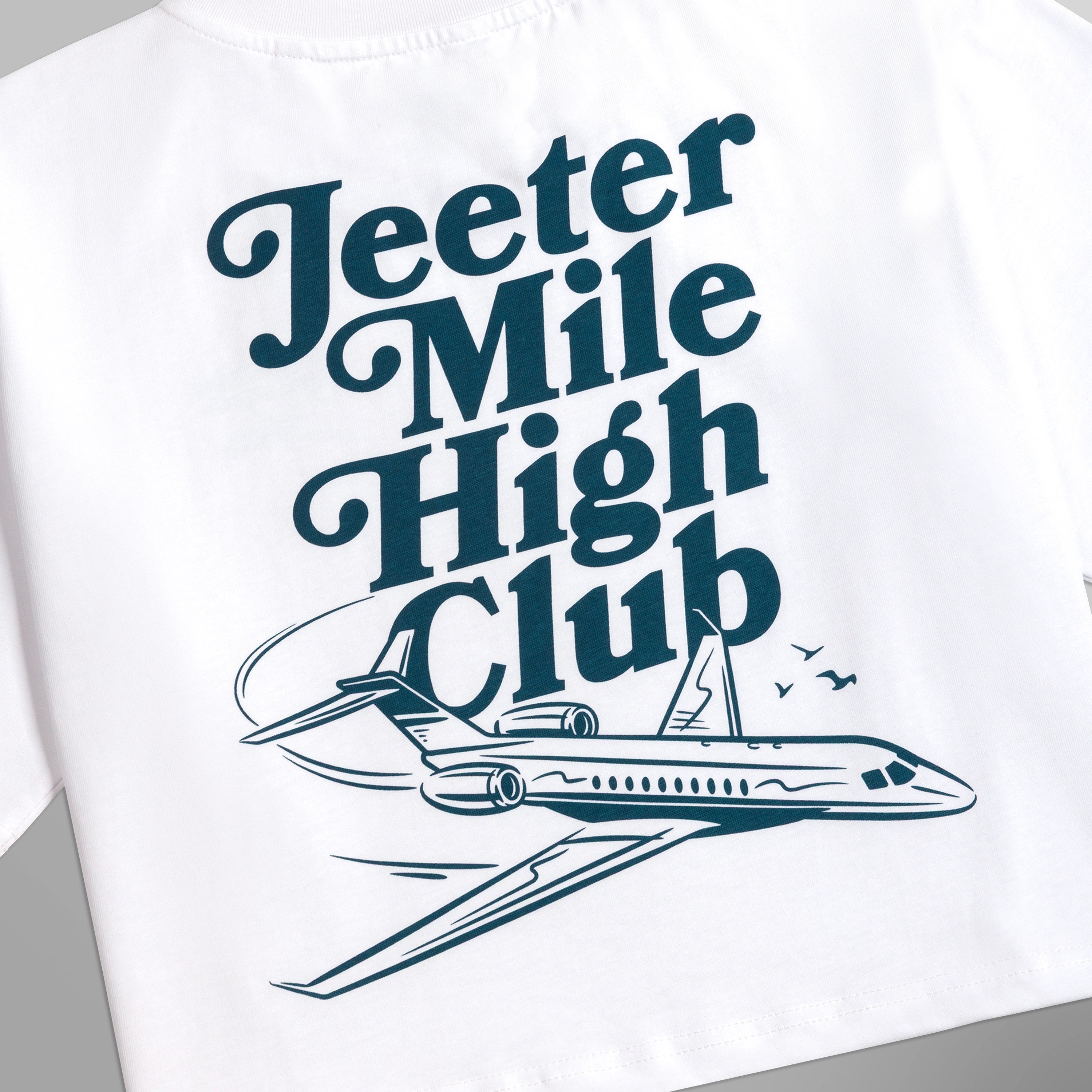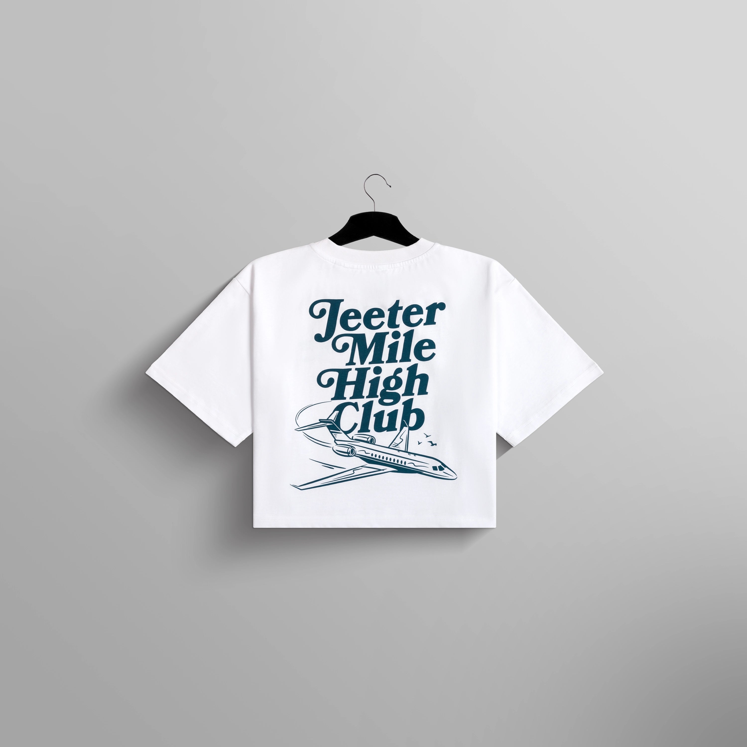 This cropped white tee keeps it simple but statement-worthy, featuring the official Mile High Club logo on the back. Cut in a flattering, boxy silhouette with a soft, breathable feel—it’s the kind of staple that goes with everything, but still makes you feel like you’re en route to somewhere special.