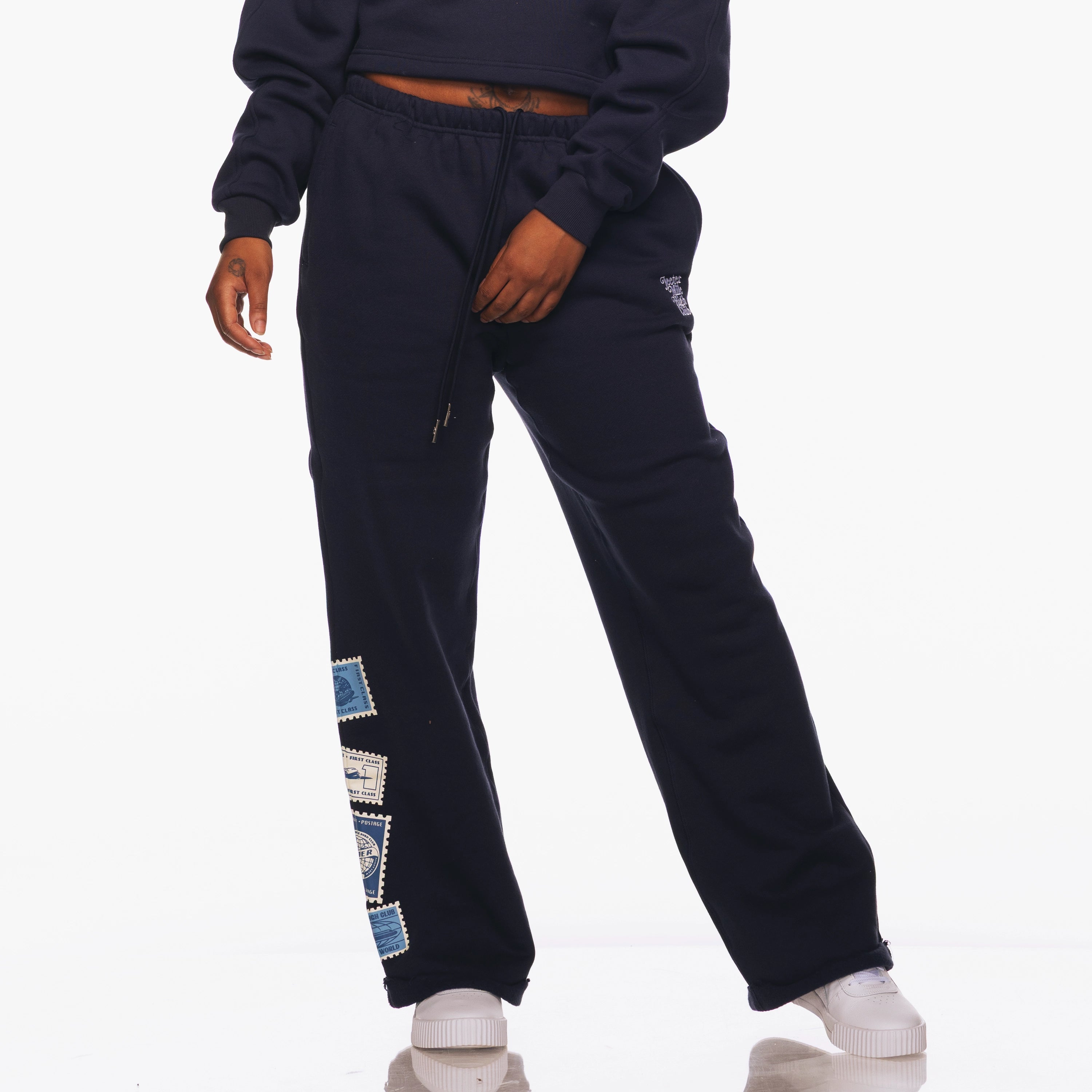 The fit everyone wants. The Mile High Club Wide Leg Stamps Sweatpants take vintage travel graphics and pair them with a relaxed, unisex silhouette designed to move differently. Featuring signature postage stamp artwork along the leg and subtle Mile High Club branding, these sweats balance bold detail with effortless wearability.