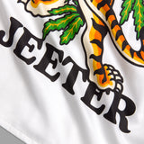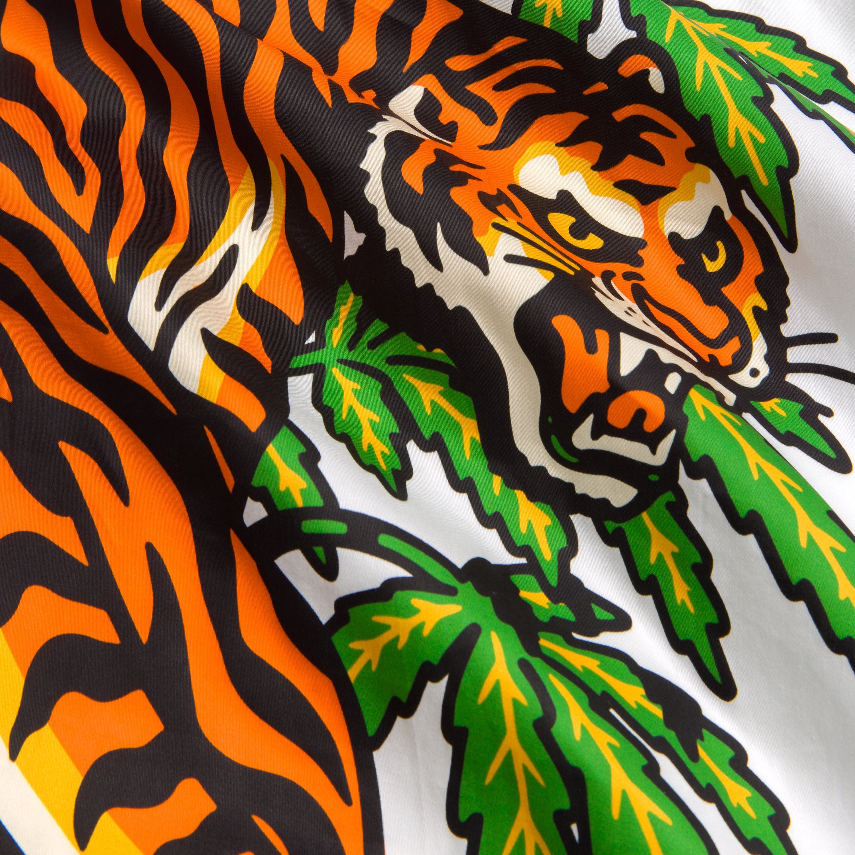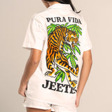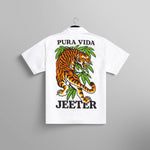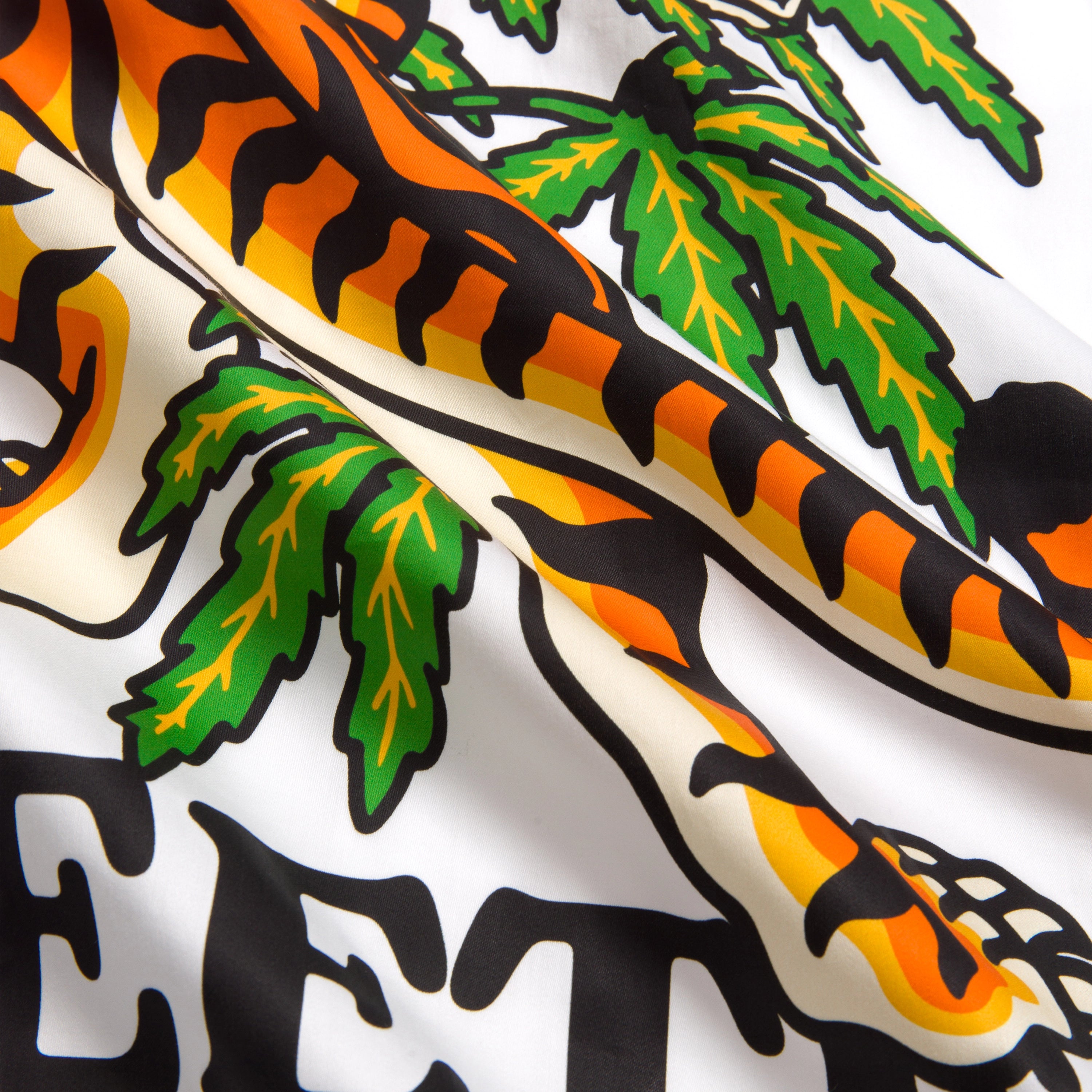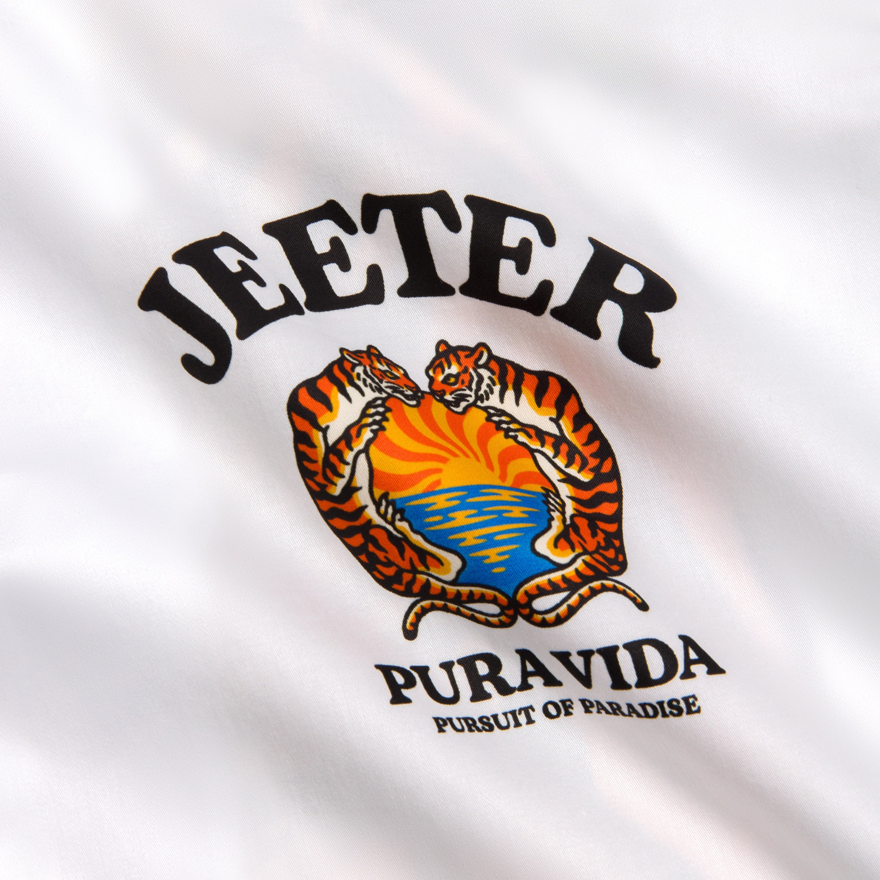 Smooth, lightweight, and built to move — this matte satin button down is the definition of effortless heat. Designed with a relaxed unisex fit, it brings breezy comfort with a polished edge, whether you’re chasing golden hour or stepping out after dark. Finished with a bold back graphic that roars with jungle energy, it’s made to stand out from every angle. Pair it with the matching shorts for the full Pura Vida vibe.