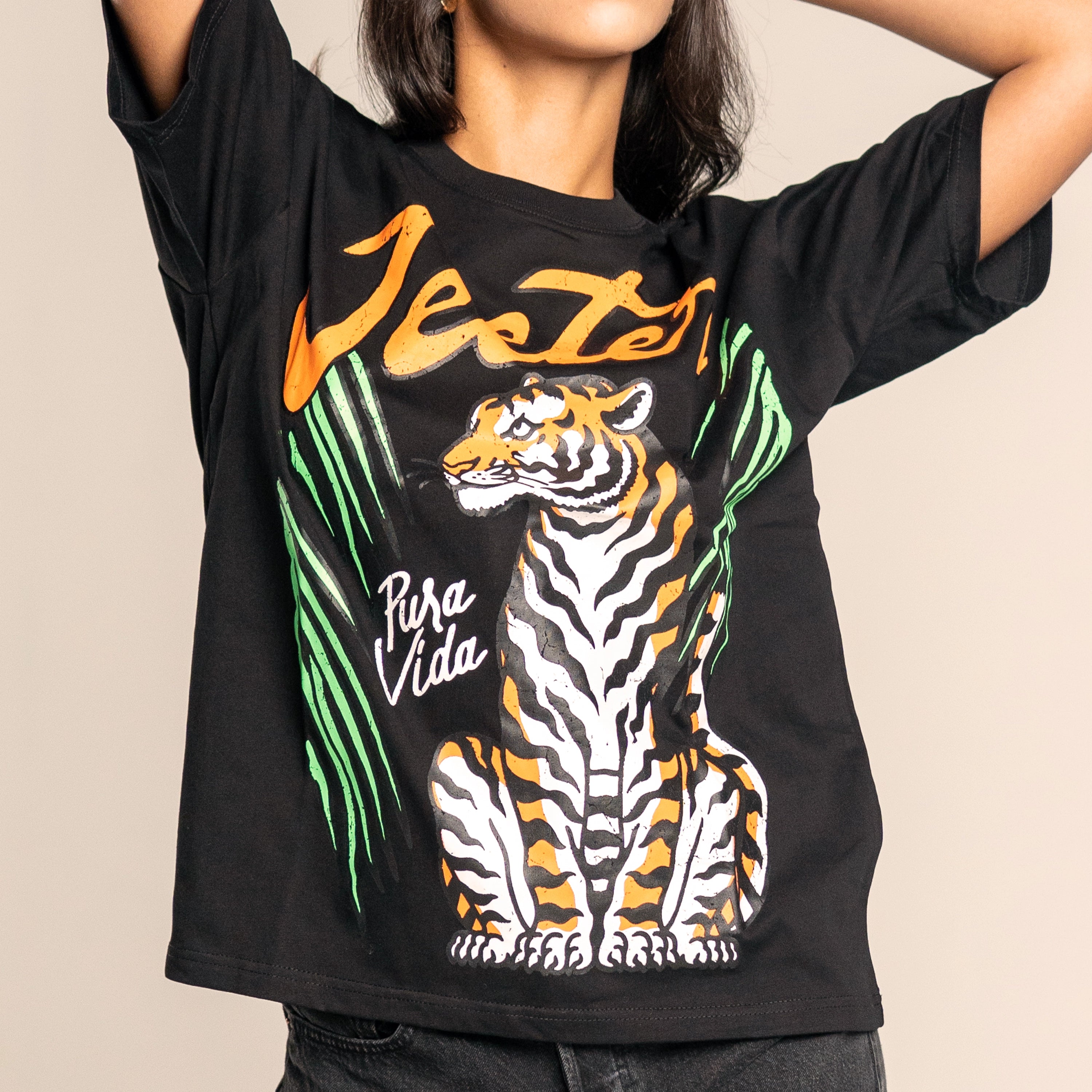 Bold, breathable, and built for everyone — this unisex tiger tee brings jungle energy to any fit. Cut from soft, easy-moving fabric with a classic fit, it’s finished with a fierce graphic that makes a statement front and back. Perfect for laid-back days, rooftop nights, or anywhere the wild takes you.