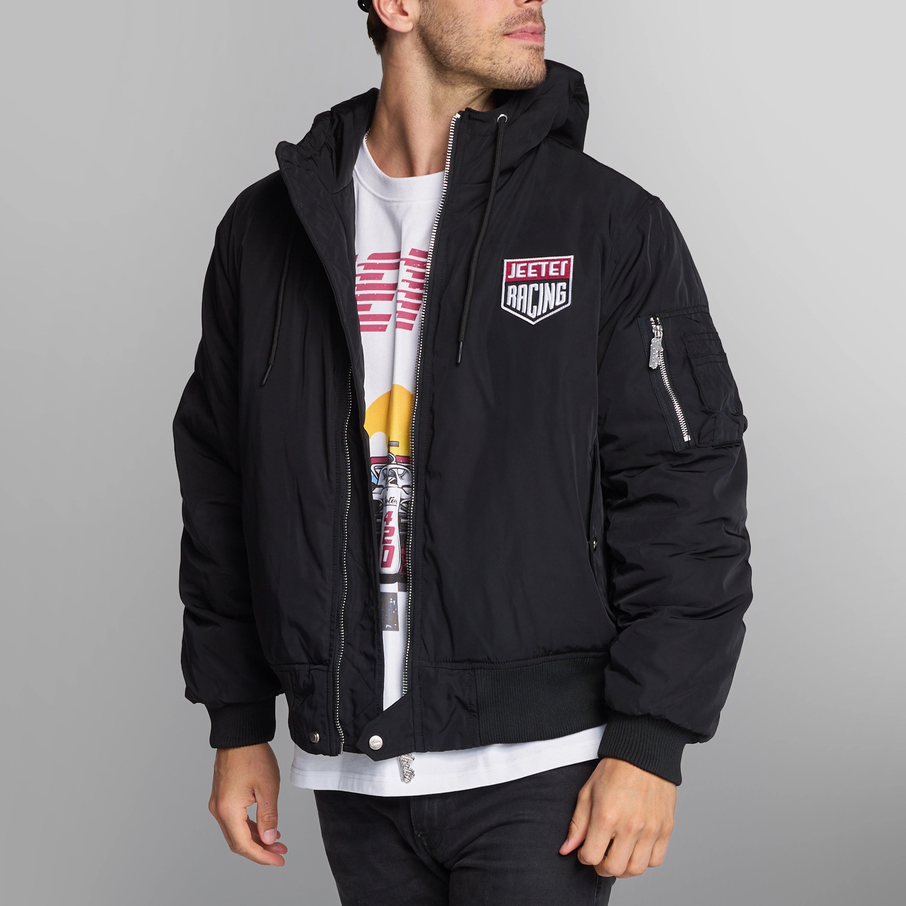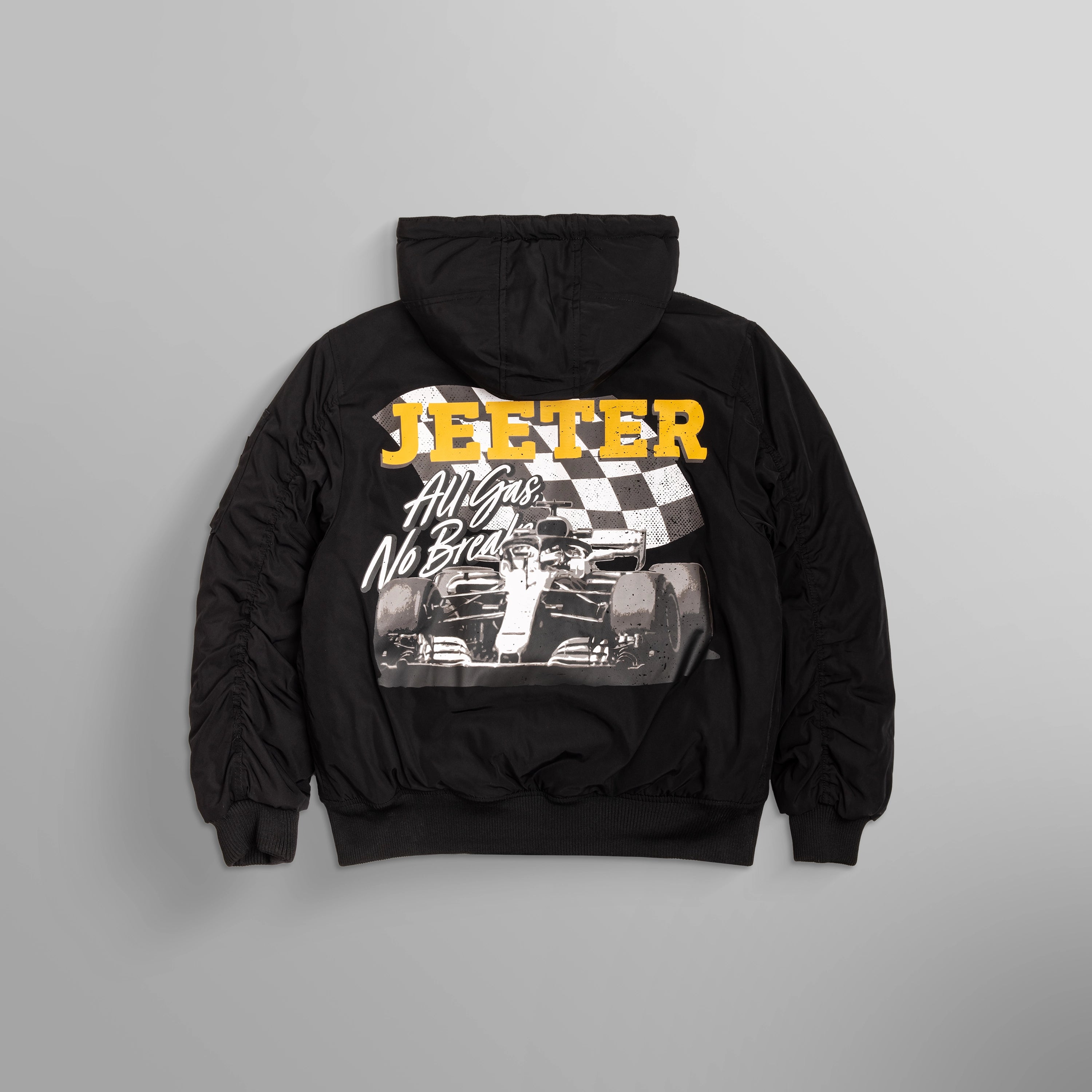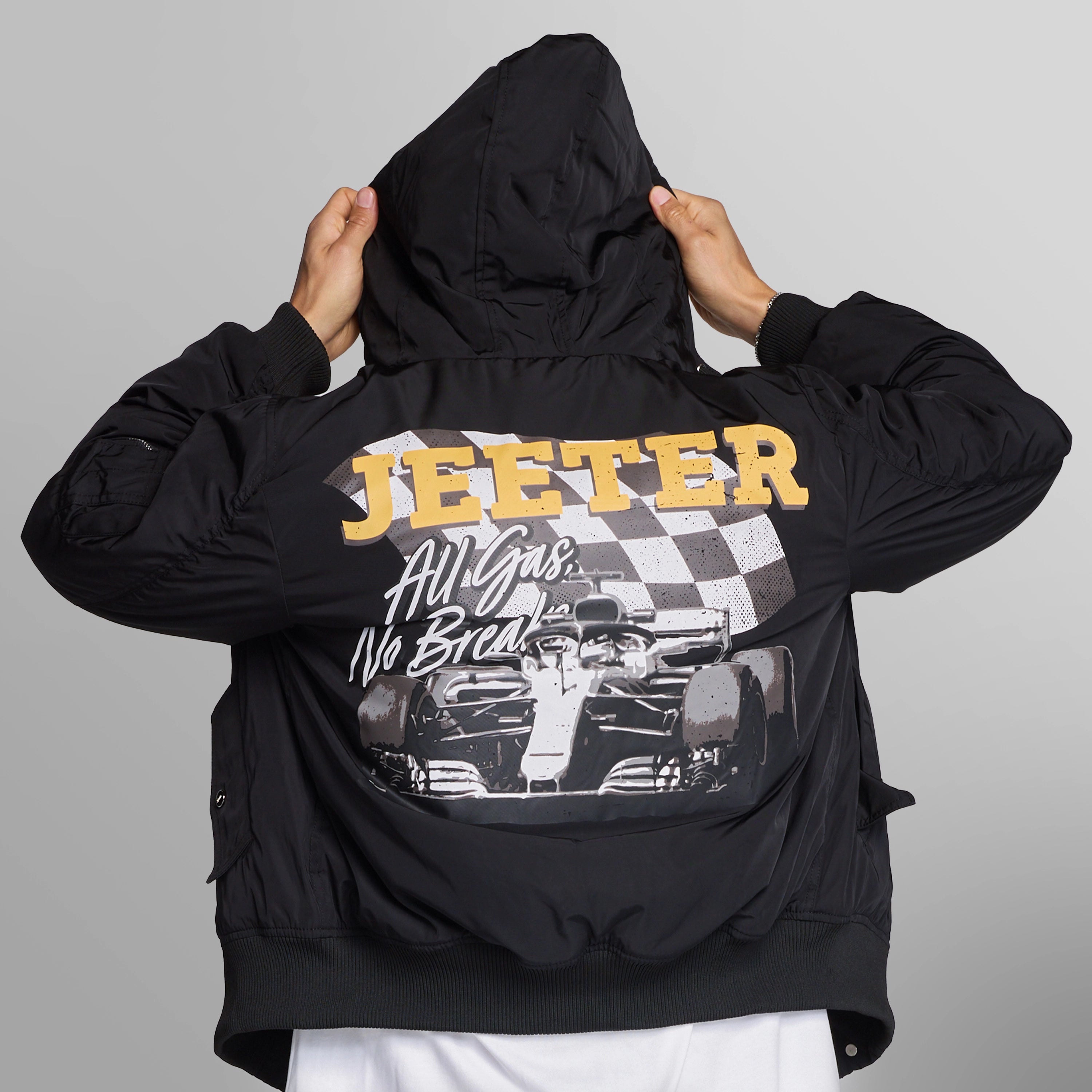Racing All Gas No Breaks Men's Hooded Bomber Jacket - Black