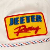 We spared no details on this Throwbacks White Racing Hat. Cotton Twill Dad Cap with fitted crown and a 'Jeeter Racing' patch at the center front, a '97' Patch on the left side and a rope trim. Pair with one of our Racing Tees for a fun look to watch your fave race or run errands.